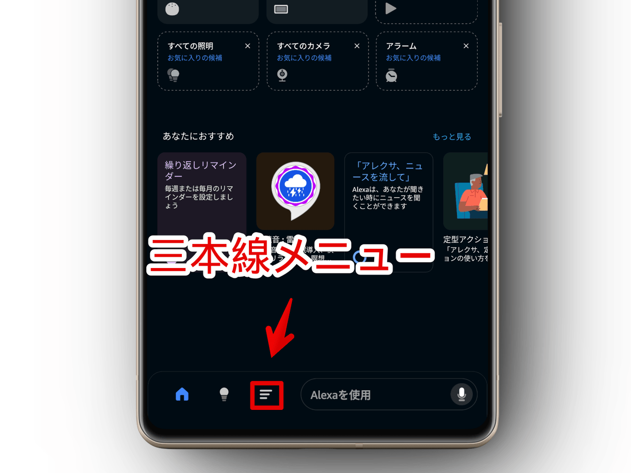 Androidスマホにインストールした「Amazon Alexa」アプリを起動します。