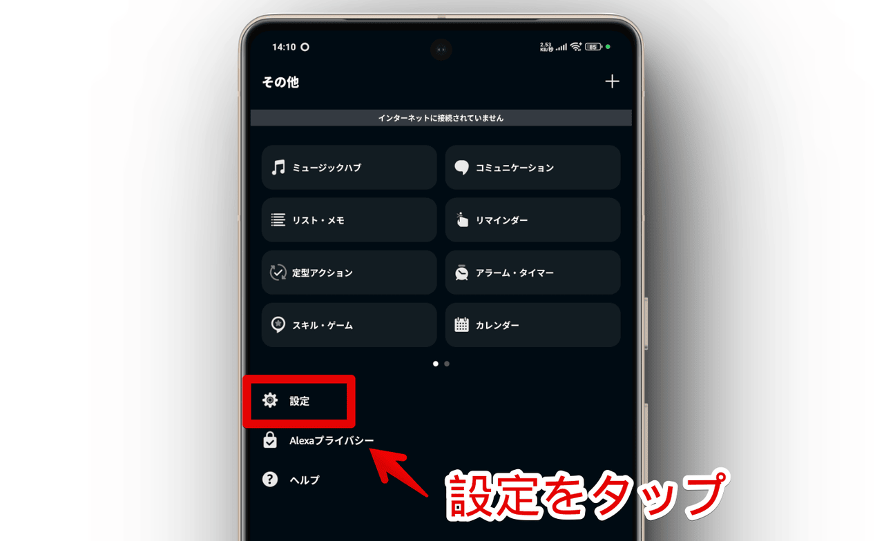 - 「Alexaアプリの設定」をタップする