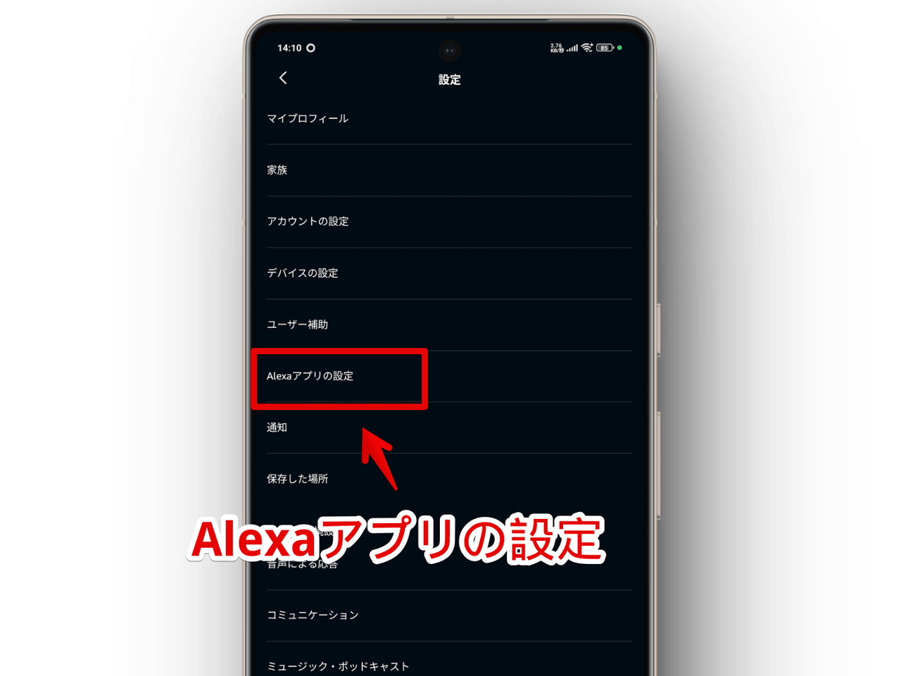 「Alexaアプリの設定」をタップします。