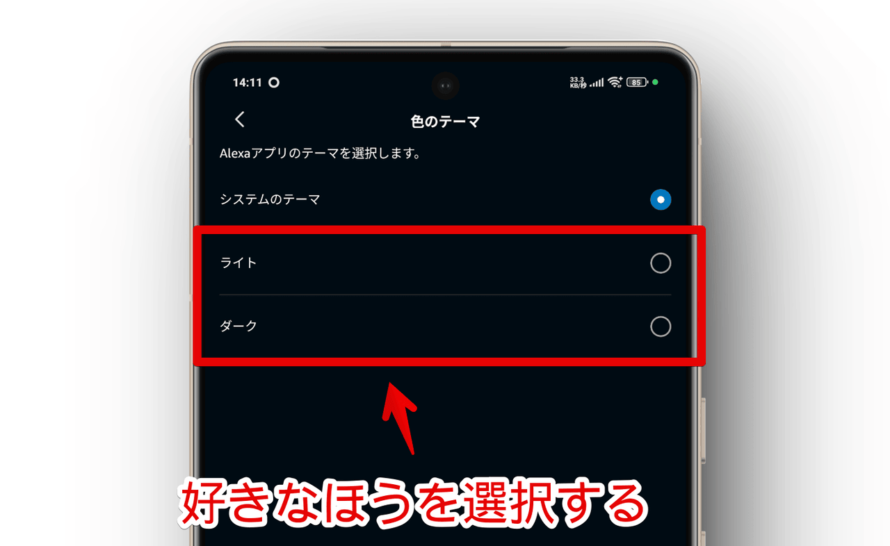 「スマホはダークモードにしているけど、アレクサアプリだけはライトモードにしたい!」といった場合、本記事の方法で手動変更できます。