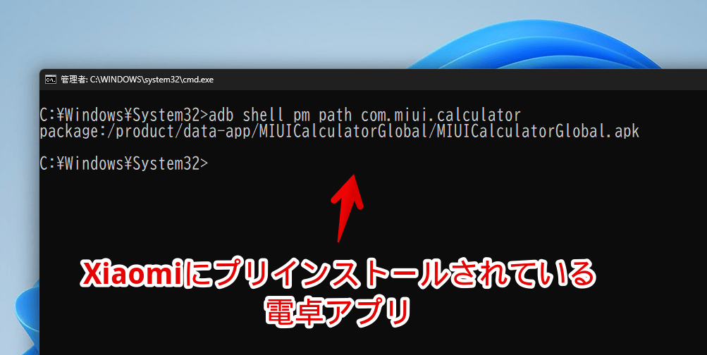 C:\Windows\System32>adb shell pm path com.miui.calculator