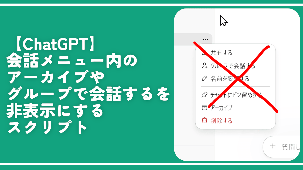 【ChatGPT】会話メニュー内のアーカイブやグループで会話するを非表示にするスクリプト