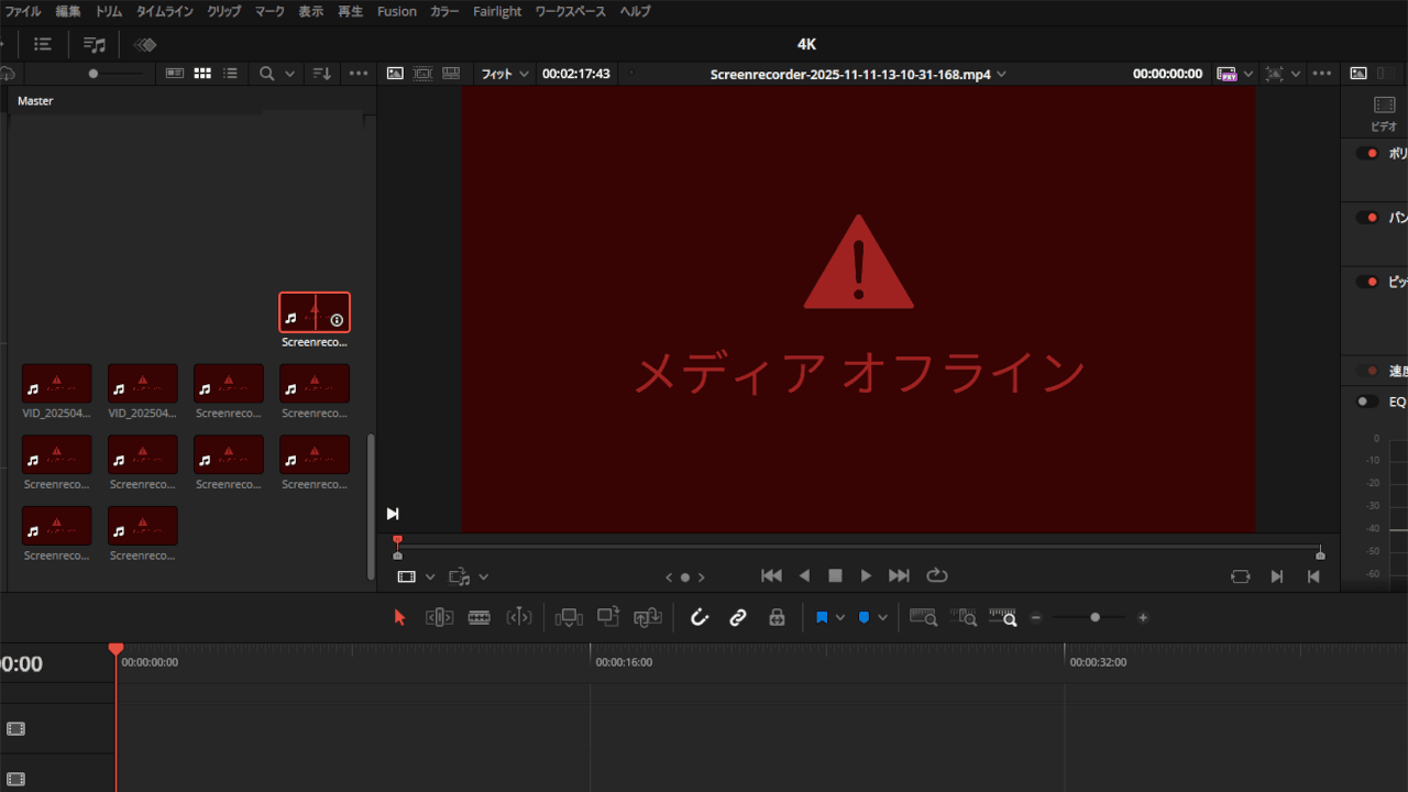 【DaVinci Resolve】存在するのにメディアオフラインになる理由。対処法紹介