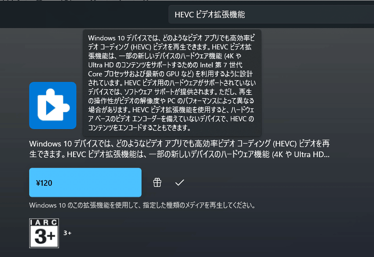 Microsoft公式が公開しているアプリで、WindowsがH.265形式の動画を再生・編集できるようにするための追加ソフトです。