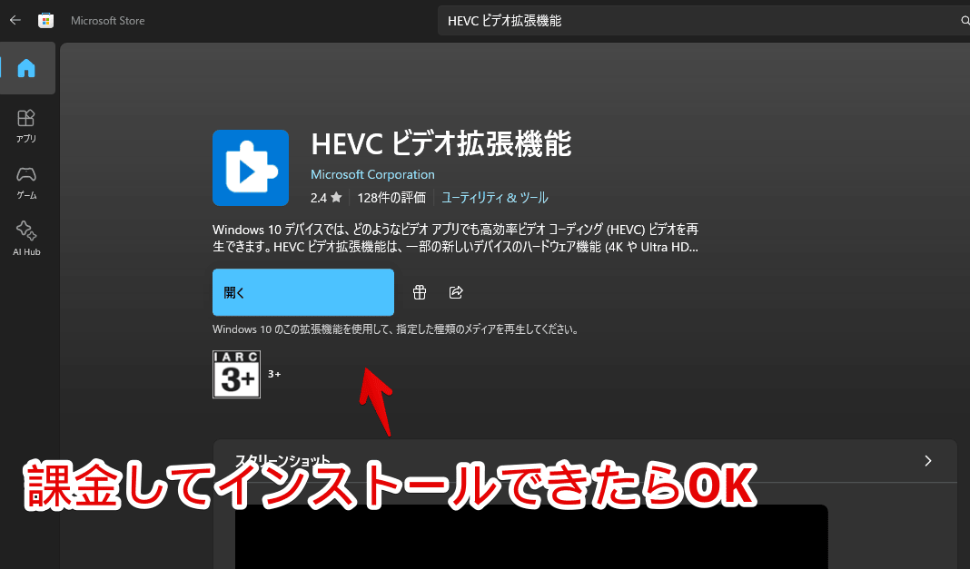 皆さんのWindows11には「HEVC ビデオ拡張機能」というアプリがインストールされていますか?以下がMicrosoftストアのリンクです。