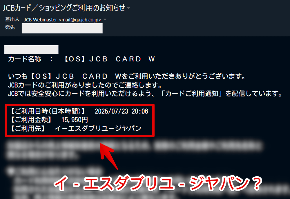 JCBクレジットカードに「イ-エスダブリユ-ジヤパン」から請求がきた画像