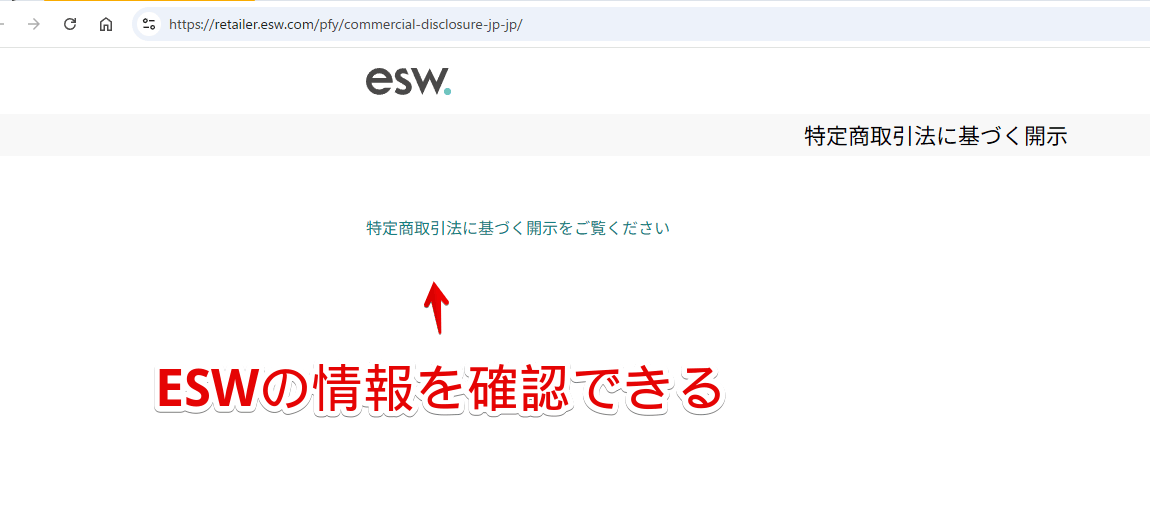 ESWの「特定商取引法に基づく開示をご覧ください」サイト画像
