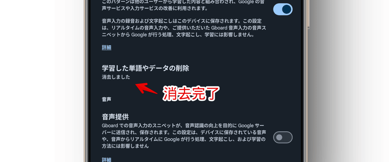【Gboard】学習した予測変換を全削除する方法。設定からできる!