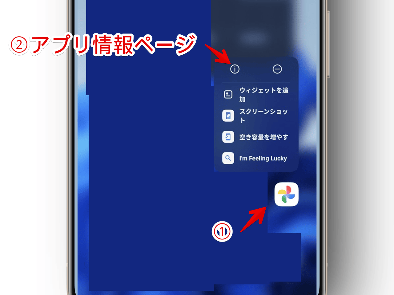XiaomiスマホでGoogleフォトのアプリ情報設定ページを開く手順画像