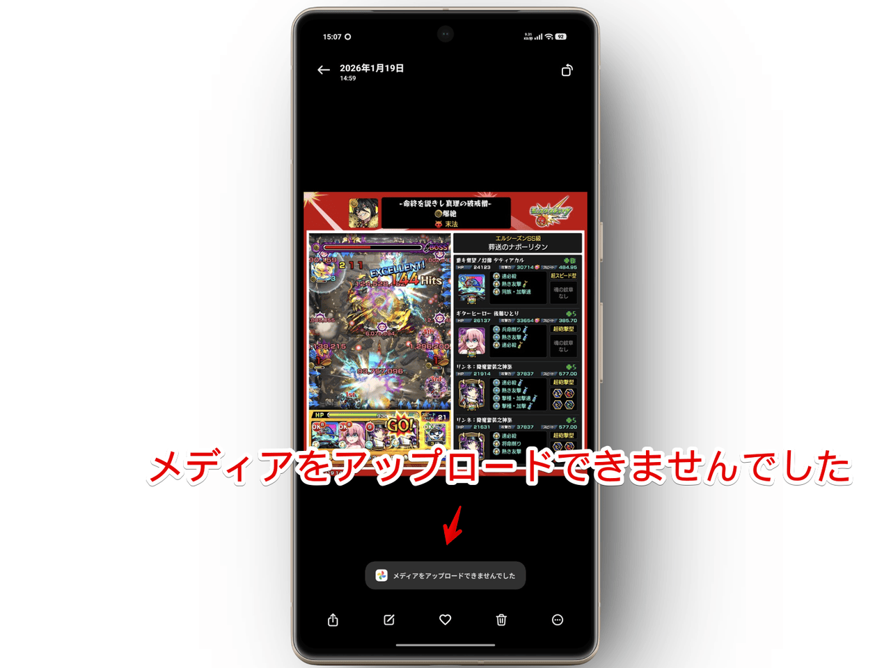 Googleフォトの「メディアをアップロードできませんでした」エラー画像