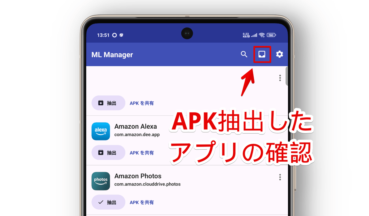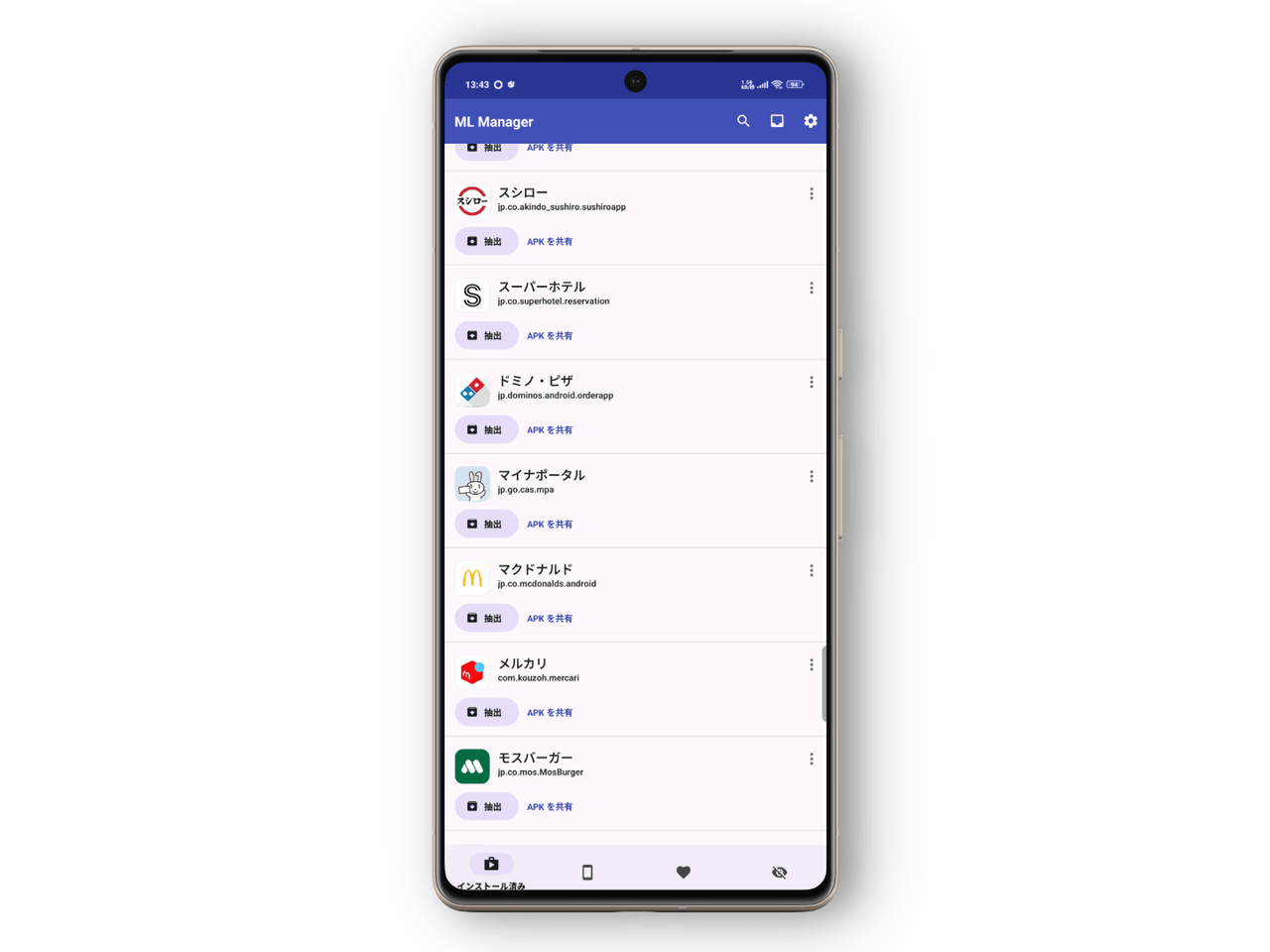 【ML Manager: APK Extractor】アプリのAPKを抽出するAndroidアプリ