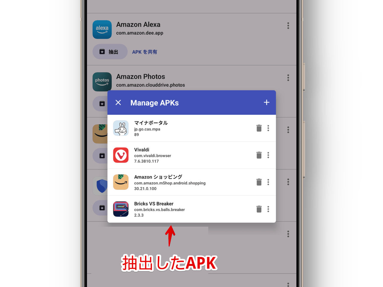 AndroidスマホにインストールしているアプリをAPKファイルで抽出できるAndroidアプリです。