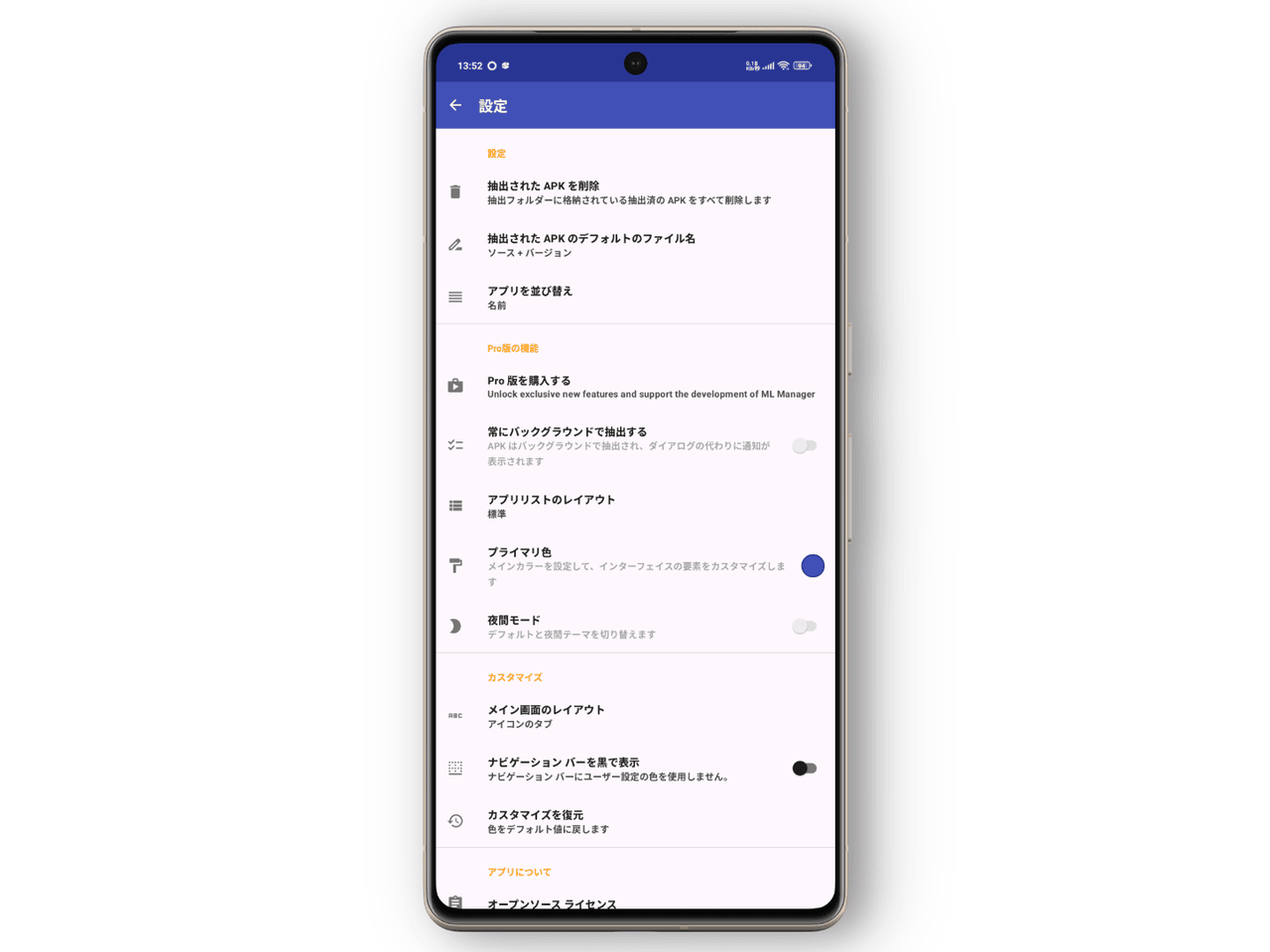 セキュリティをどこまで自分が意識するのか、少し許容して「ML Manager: APK Extractor」などを使う楽な方法にするのか、すべてひっくるめて自己責任です。