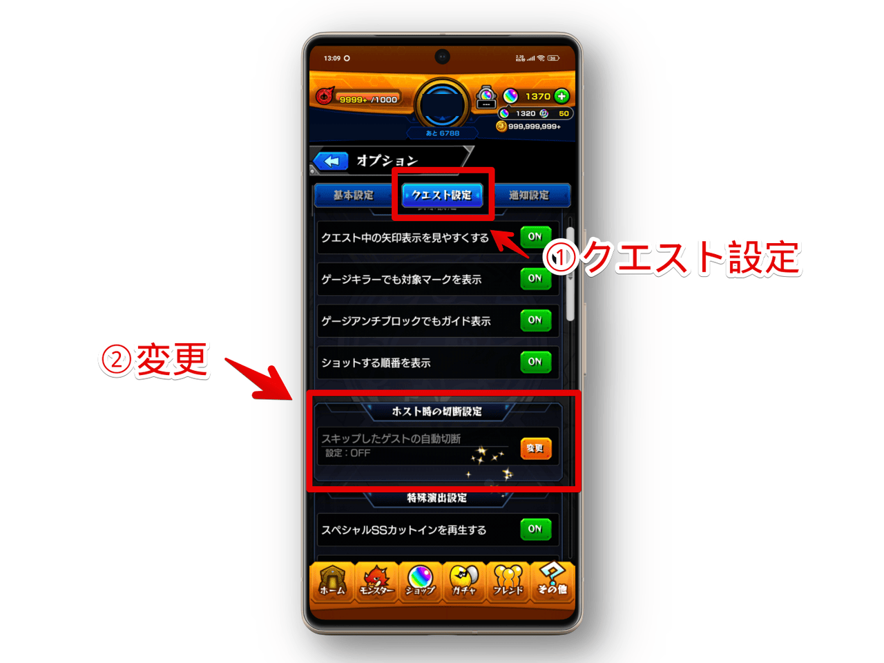 - 「クエスト設定」をタップ