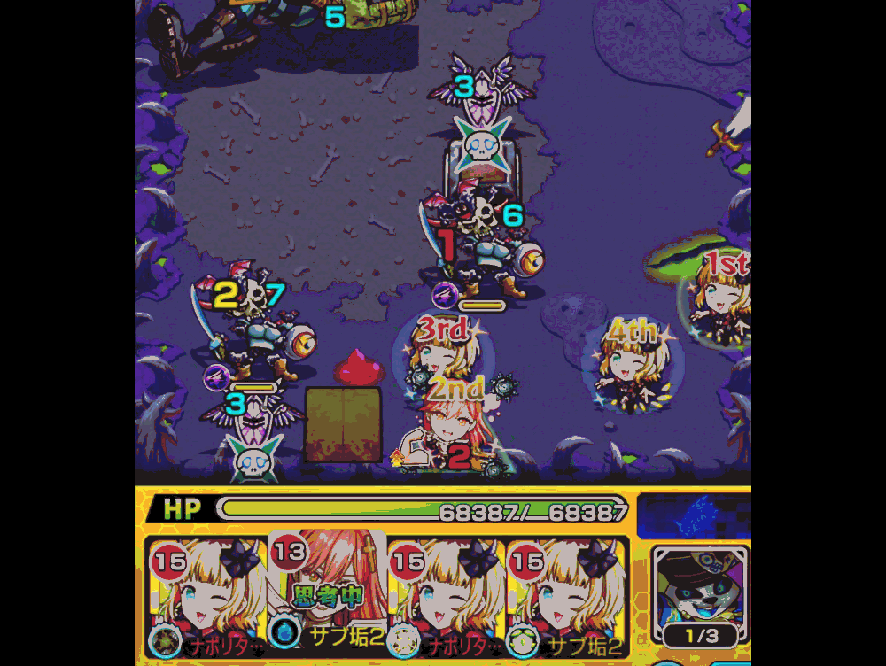 この状態で、例えば参加してきた2Pが放置したとします。通常クエだと30秒間あり、通常なら3、2、1のカウントダウンのあと、次の3Pの番になります。