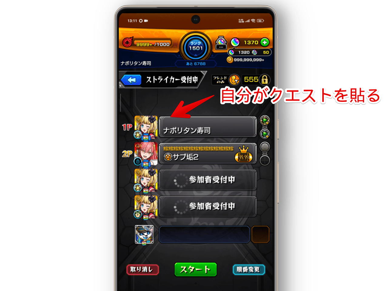 設定した状態で自分がクエストを貼ります。