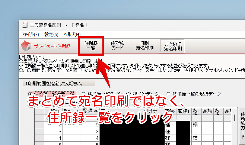 この記事では、Windows11にインストールした「二刀流宛名印刷」ソフトで特定の住所録にチェック(〇)をつける方法を書きます。