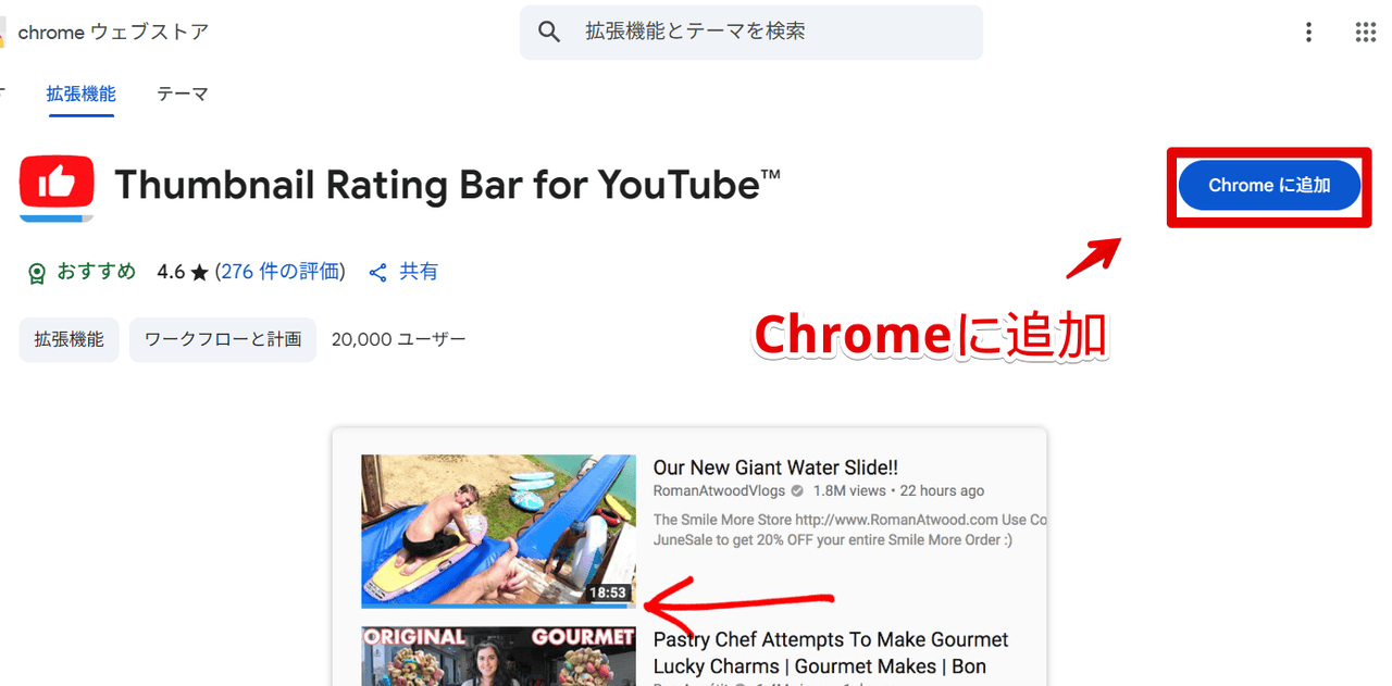 「Thumbnail Rating Bar for YouTube」拡張機能をインストールする手順画像1
