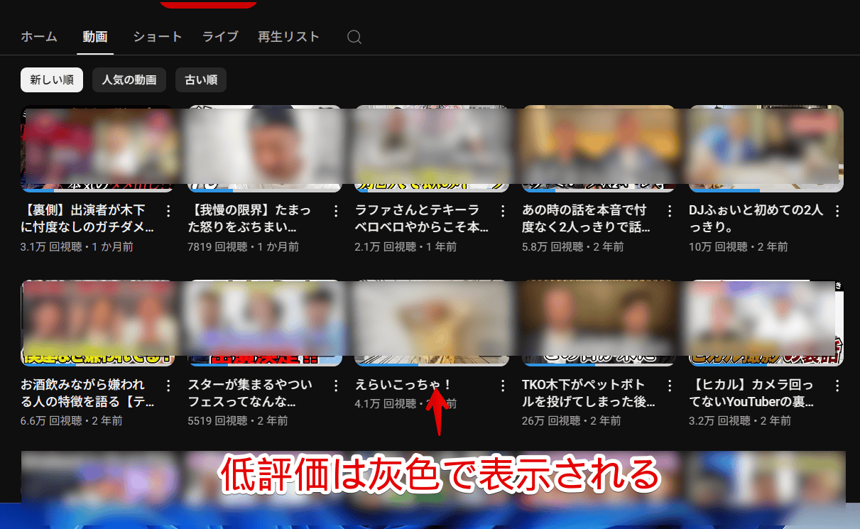 サムネイルを見るだけで簡易的ですが、どのくらい高評価が押されているのか確認できます。