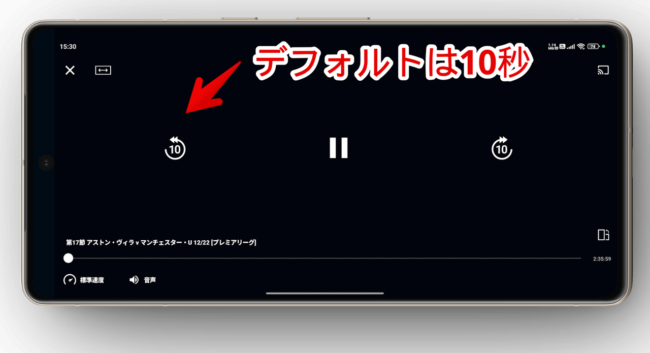 スマホアプリ版「U-NEXT」のデフォルト早送り・早戻り画像