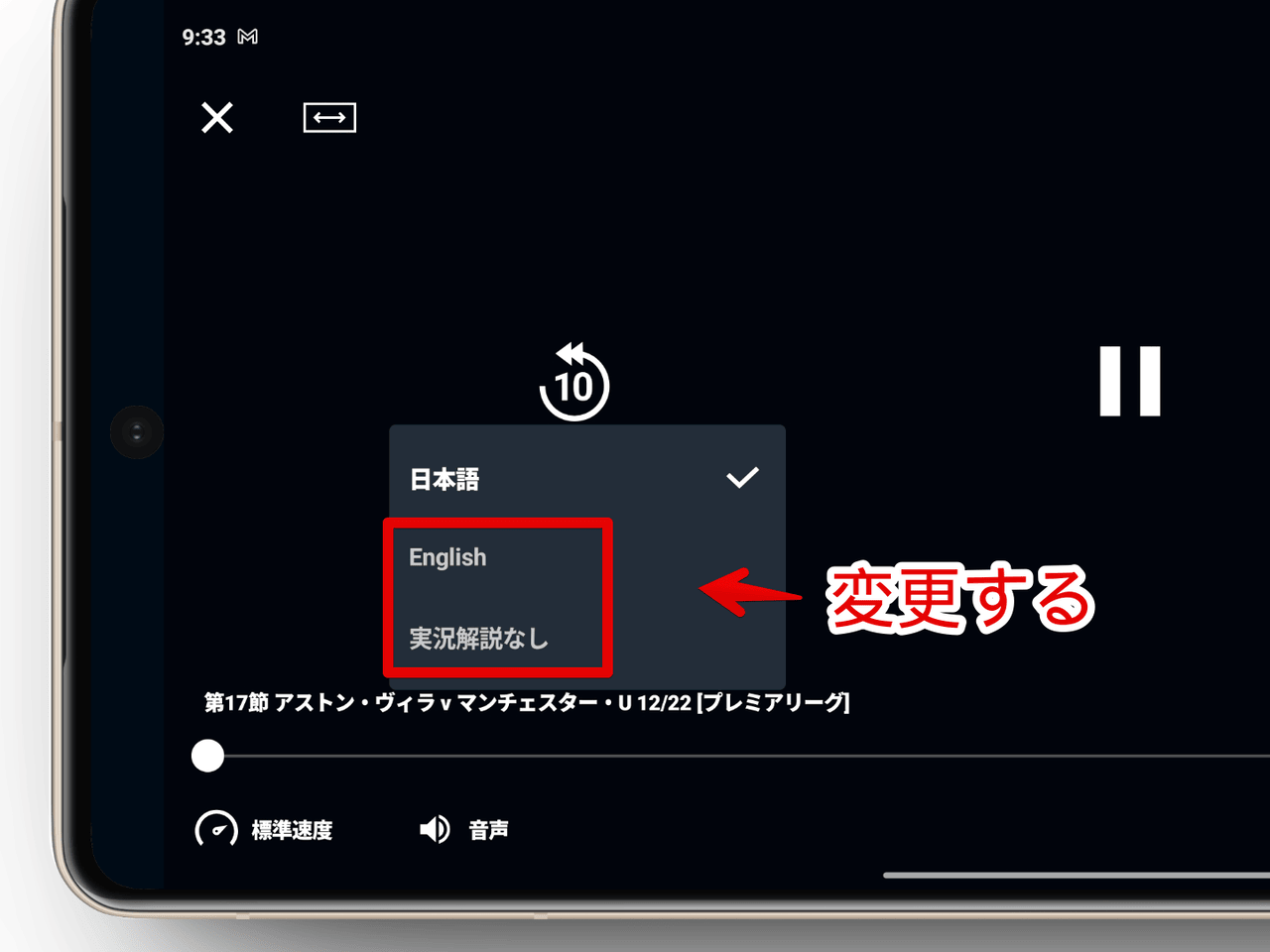 」で配信されているサッカーの日本語実況解説をオフにして、現地音声に変更する方法でした。