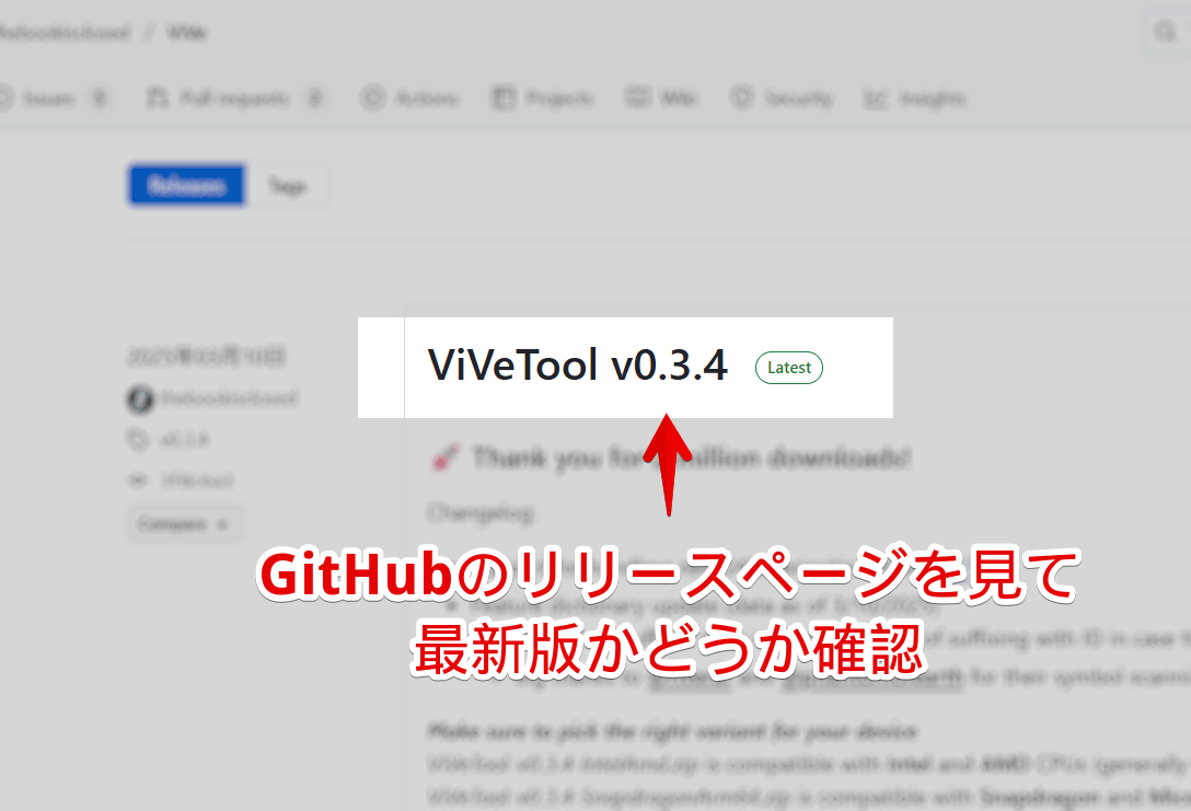 「ViVeTool」はインストール不要で使えるコマンドラインツール(CLIツール)で、GitHubから入手する性質上、基本的に自動アップデートなどはないです。