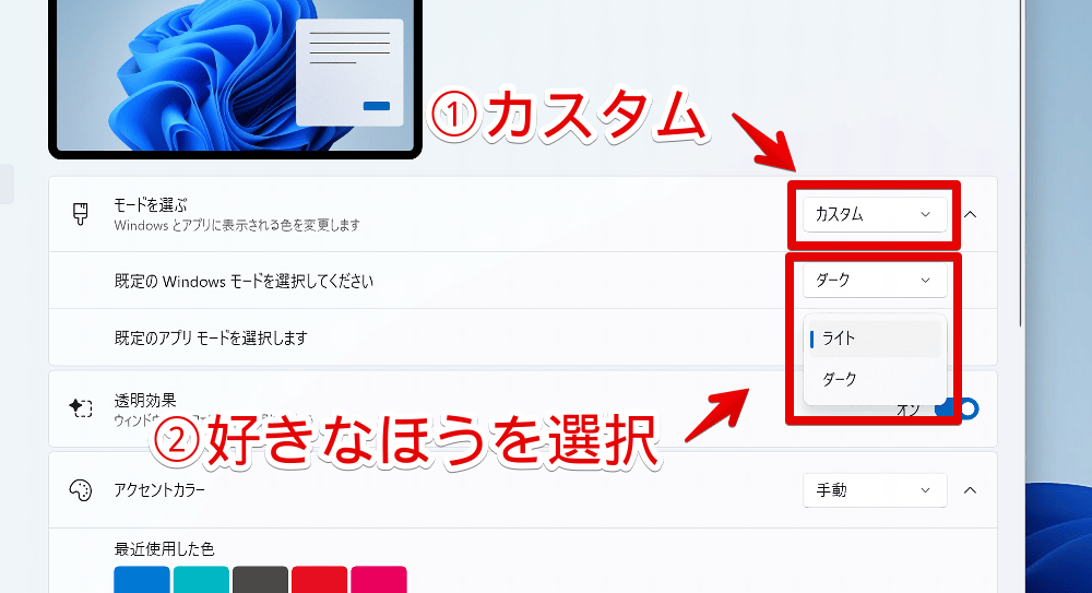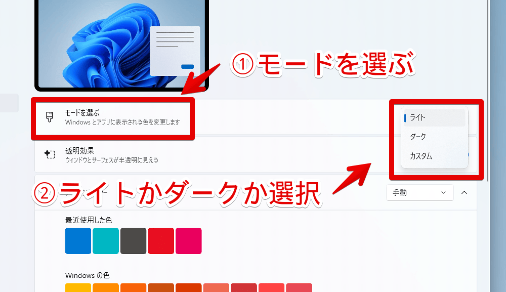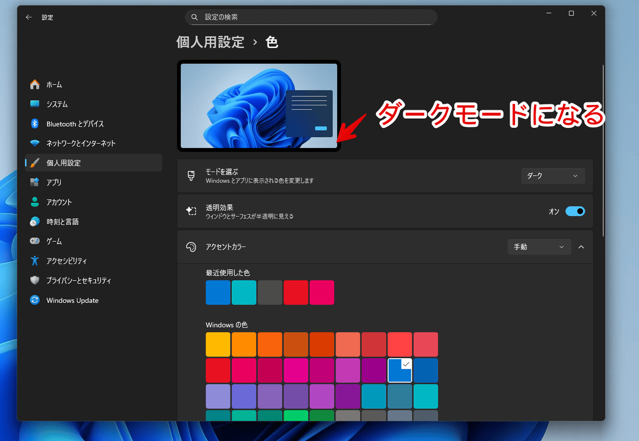 Windows11をダークモードにする手順