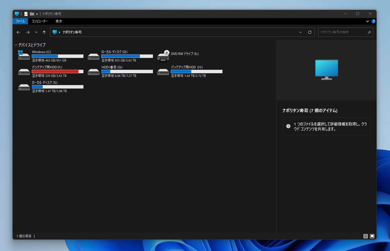 エクスプローラーもダークになっています。