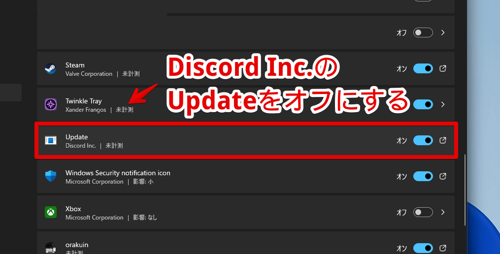 【Windows11】Discordが勝手に起動する!スタートアップをオフにする方法